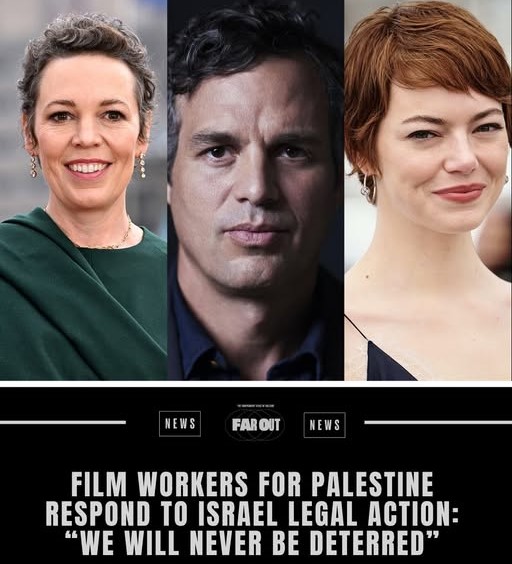 Зад тоа писмо застанаа многу познати имиња, меѓу кои се: Тилда Свинтон, Хавиер Бардем, Марк Рафало, Оливија Колман, Питер Мален, Мајк Ли, Кен Лоуч, Ширин Нешат, Фернандо Меирелес, Гаел Гарсија Бернал, Ема Стоун, Сузан Сарандон, Јоргос Лантимос, Брајан Кокс и уште многу други.